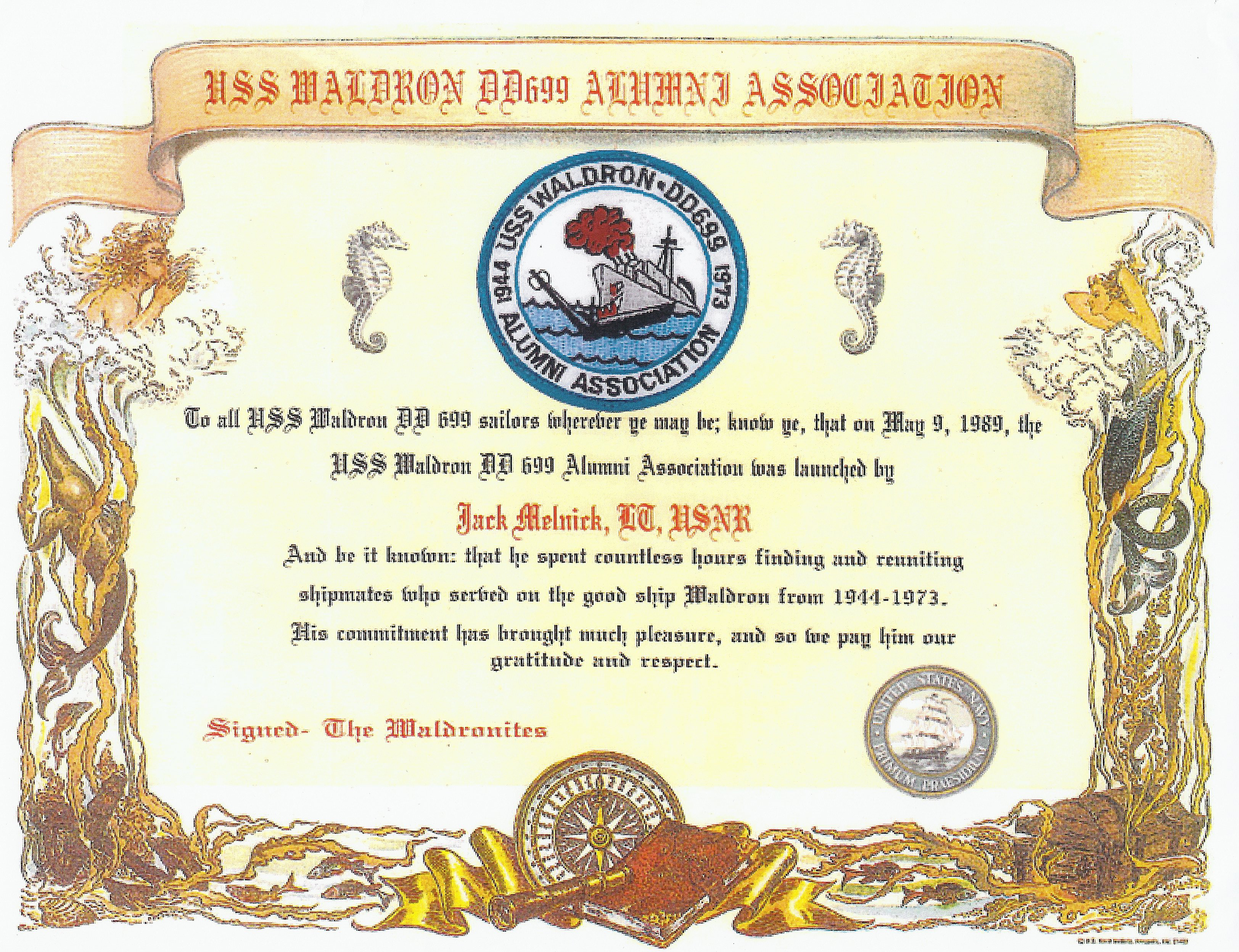 The USS Waldron's Coat of Arms Photo courtesy Jack Melnick