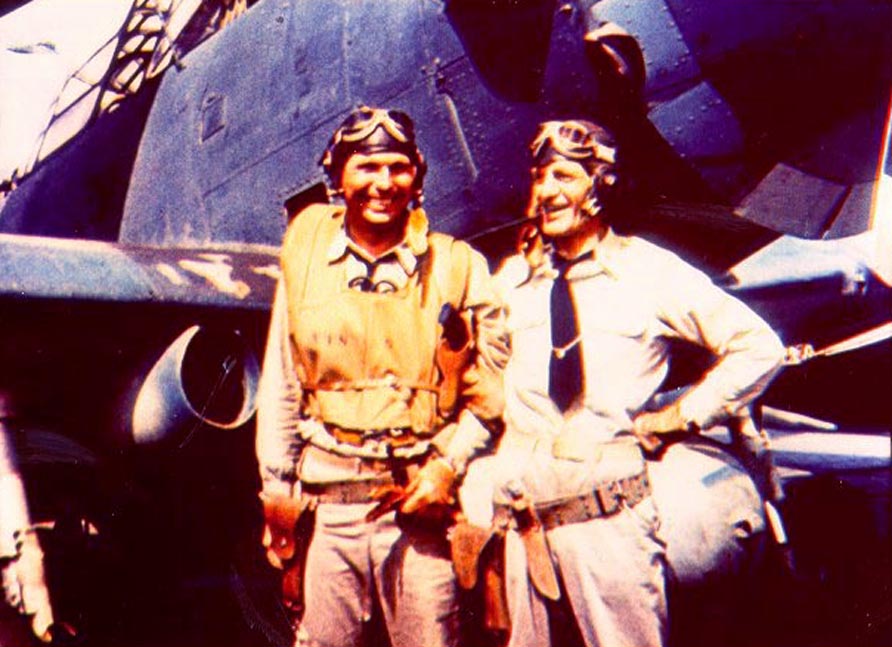 LCDR Waldron and Horace F. Dobbs, CRMP on the flight deck of the USS Hornet Photo courtesy Mark Horan