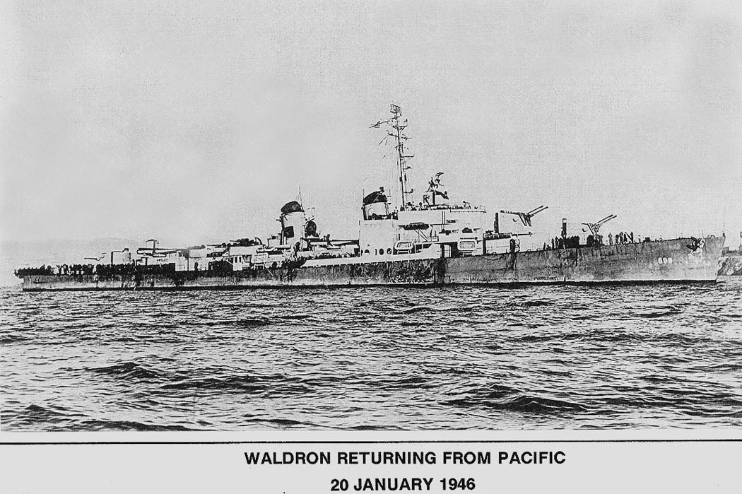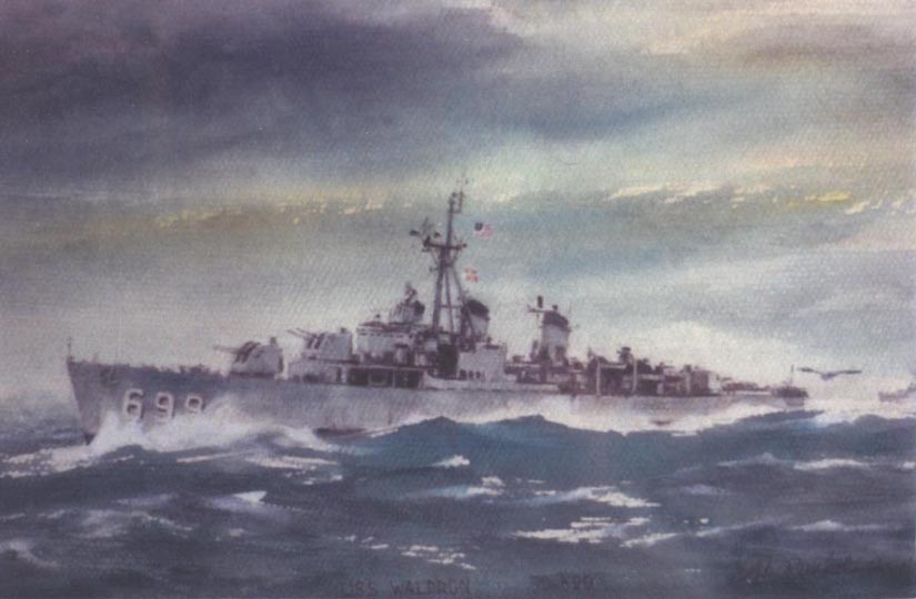 Painting of USS Waldron (artist unknown) Photo courtesy Fr Herb