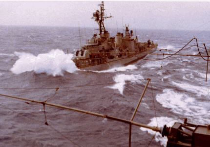 USS Waldron and USS Strong taking on Stores at Sea from the USS Sylvania